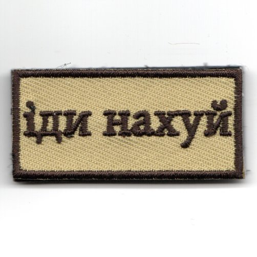This is the “”””desert”””” version of the comment made by the Ukrainian soldiers on ‘Snake Island’ back to the Soviet Warship when told to surrender or be destroyed. It is written in the Ukrainian language and comes with velcro.