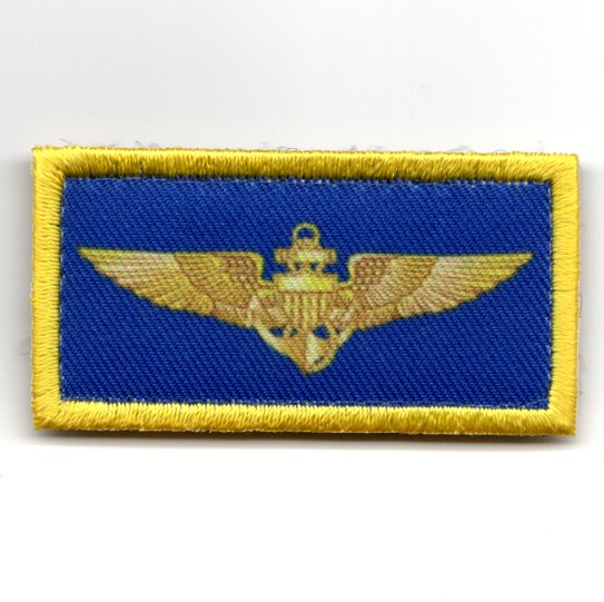 (Another AV8RSTUFF creation): This is the Sleeve Tab patch that shows the US Naval Aviator wings (gold) on a blue background. It comes with velcro attached.