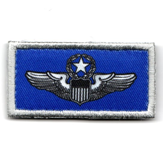 (Another AV8RSTUFF creation): This is the Sleeve Tab patch that shows the US Air Force ‘COMMAND’ Pilot wings (silver) on a blue background. It comes with velcro attached.