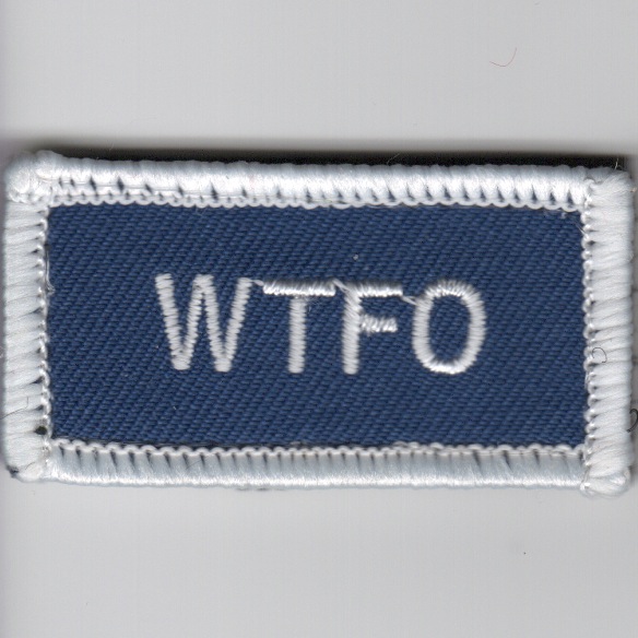 This is the blue/white version of the FSS tab that says “”””WTFO”””” (What The F*** Over?). This patch has velcro attached.