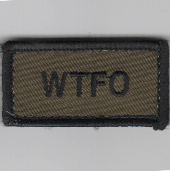 This is the subdued version of the FSS tab that says “”””WTFO”””” (What The F*** Over?). This patch has velcro attached.
