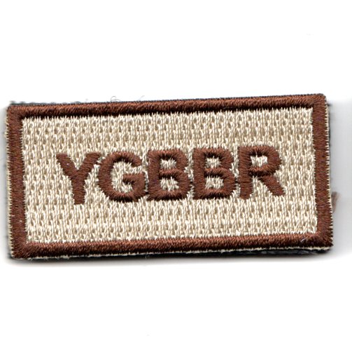 This is the desert version of the sleeve patch that says YGBBR…which stands for “”””YOU GOTTA BE BORN RETARDED”””” (this is NOT a PC patch). This patch comes with velcro attached.