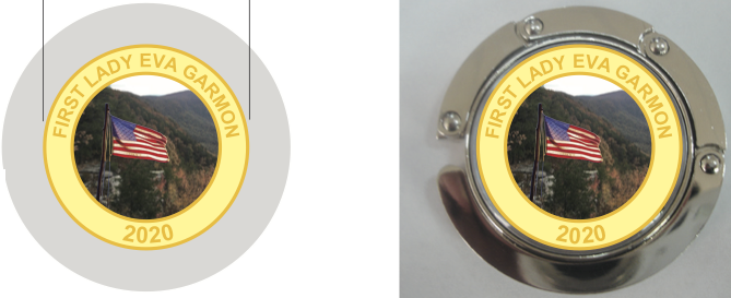 This is the ladies “PURSE HOLDER” that you put on the edge of the table, then the hook (unfolds from around the design) holds the purse off the floor. Has GM20’s First Lady’s Design on the back. Neat accessory! (Example of a) PURSE HOLDER