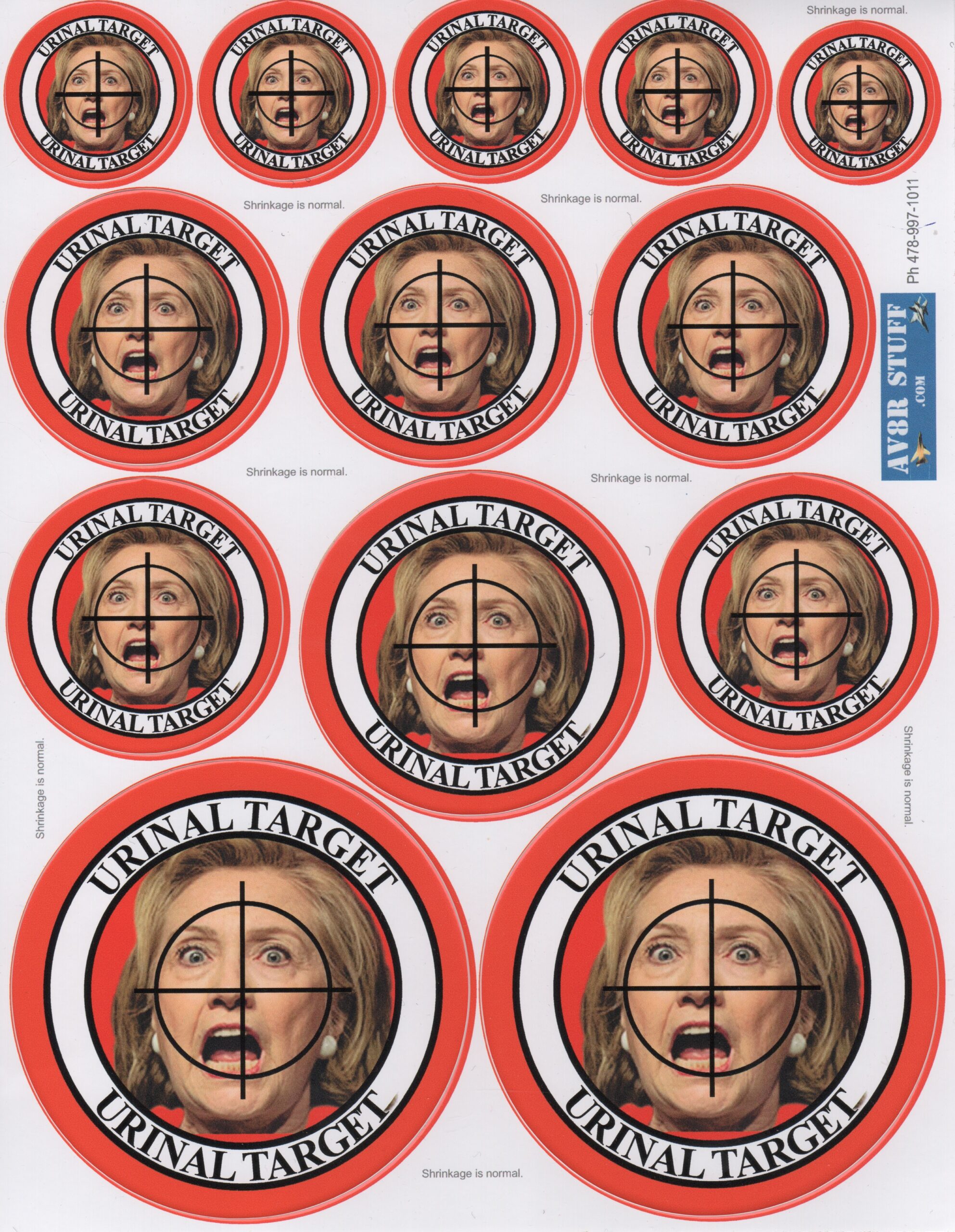 This is the Hillary Rodham Clinton (HRC) sheet of zaps that has 13 stickers of varying sizes.