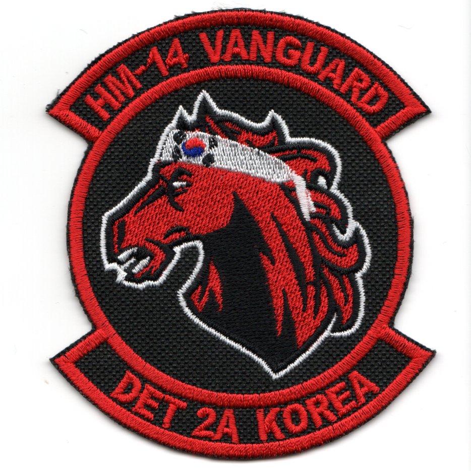 (Korean) This is the HM-14 ‘VANGUARD’ patch created for DET-2A for their deployment / operations in South Korea. It depicts their mascot (the horse) with a Korean bandana on it’s head. This patch does not have velcro attached. (note: since this came from a small Korean embroidery shop, the pricing is slightly higher due to shipping)