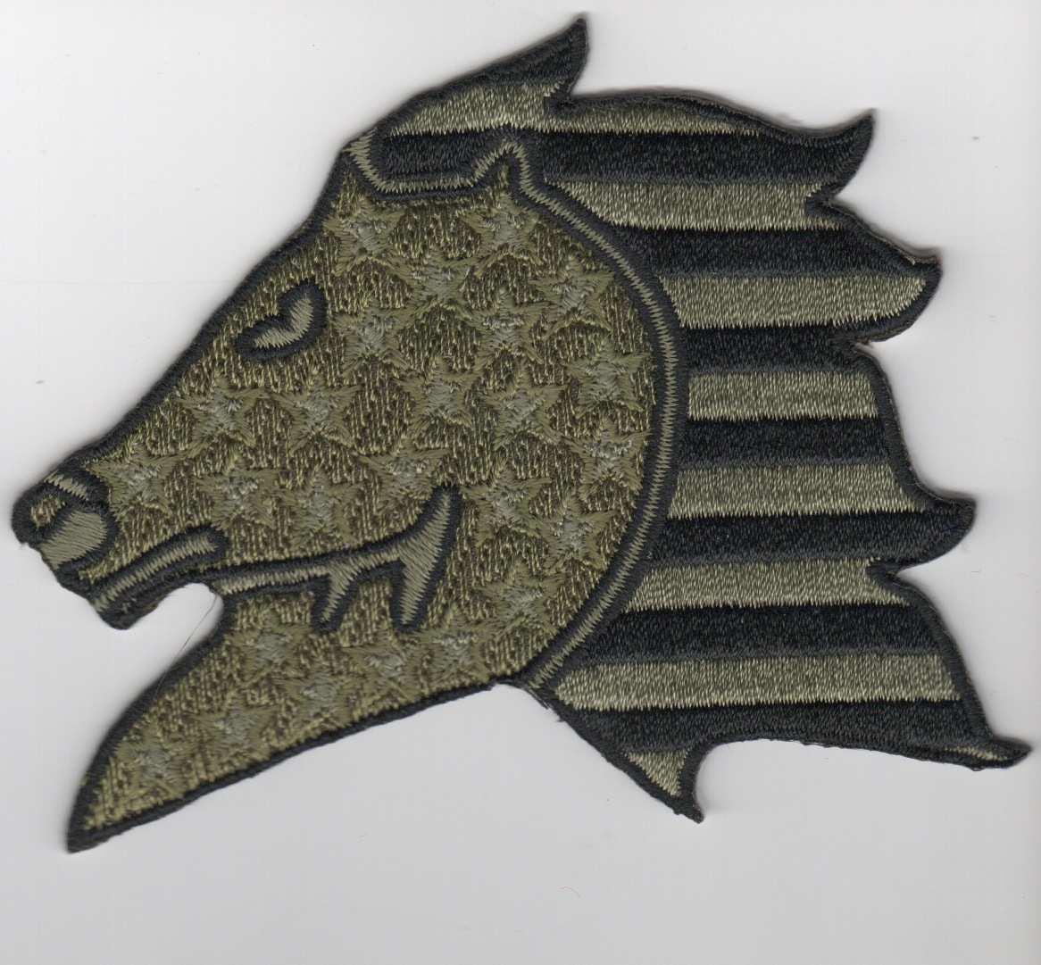 The ‘Sea Stallions’ were established in May 1978 and currently fly the MH-53E Sea Stallion out of NAS Norfolk, VA. They were implemented with side-scanning radar in ’92 for search capabilities. This version of their “horsehead” patch has the subdued patriotic theme of “Red/White/Blue” of the American Flag.
