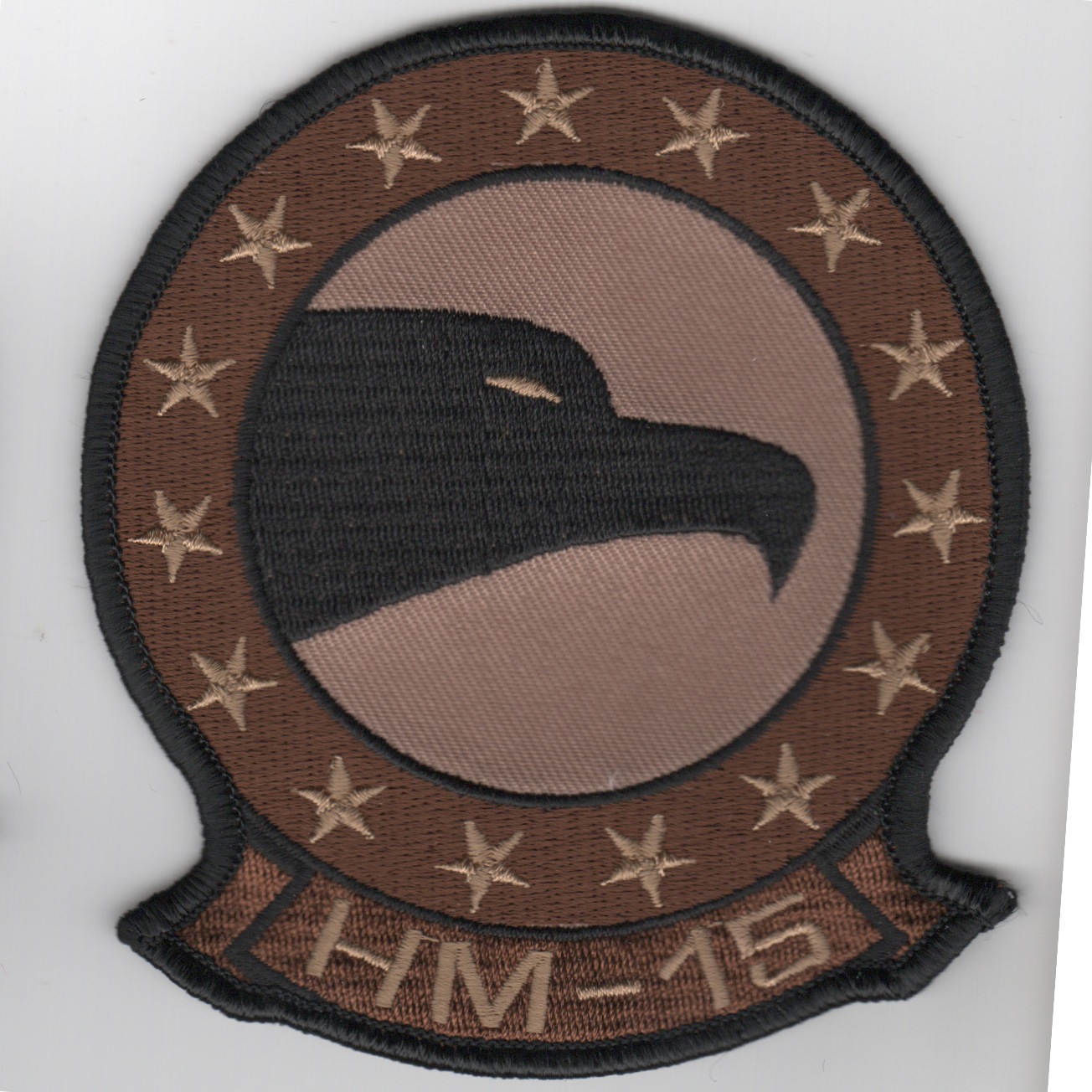 Helicopter Mine Countermeasures Squadron 15 (HM-15) is a United States Navy helicopter squadron established in 1987 and based at Naval Station Norfolk, Virginia. Nicknamed the “Blackhawks” and flying the MH-53E Sea Dragon, it is staffed by both active duty and reserve personnel. It is the sister squadron to HM-14, the “Vanguard”, based a half-mile away at Naval Station Norfolk, VA. This is the medium-sized, desert version of their squadron patch and does not come with velcro already attached.