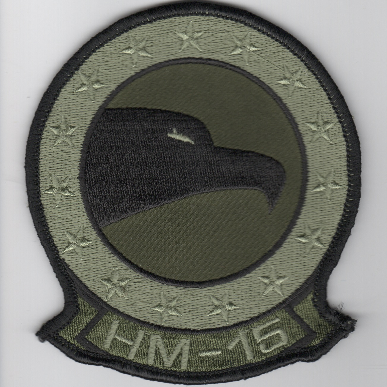 Helicopter Mine Countermeasures Squadron 15 (HM-15) is a United States Navy helicopter squadron established in 1987 and based at Naval Station Norfolk, Virginia. Nicknamed the “Blackhawks” and flying the MH-53E Sea Dragon, it is staffed by both active duty and reserve personnel. It is the sister squadron to HM-14, the “Vanguard”, based a half-mile away at Naval Station Norfolk, VA. This is the medium-sized, subdued version of their squadron patch and does not come with velcro already attached.