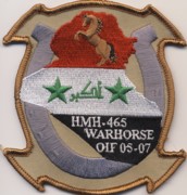 This is the desert version of the OIF (Operation Iraqi Freedom) deployed patch for the HMH-465 ‘Warhorses’ out of MCAS Tustin, CA. They fly the Sikorsky CH-53E Super Stallion transport helicopter in support of US Ground Forces.