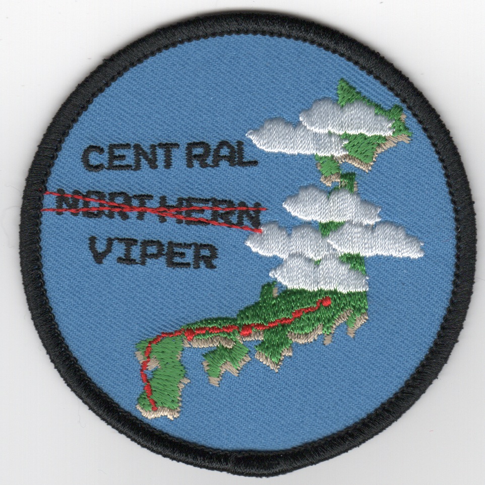 This patch was created for HMLA-169 and says “CENTRAL NORTHERN VIPER” in the middle of the patch with “NORTHERN” crossed out and is from UDP 17.2. HMLA-169 was tasked with supporting the exercise Northern Viper. Due to really bad weather, none of the aircraft made it to the final destination and had to land in various parts of Japan to wait it out. It was one of those “you had to be there…†jokes within the squadron. This patch does not have velcro attached. (Thanks to one of those “who was there” for the info.)