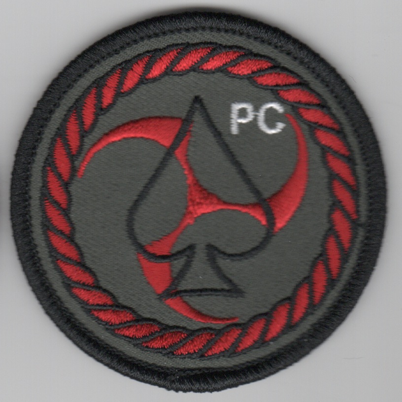 This is one of the seven subdued green patches created for the UDP 17.1 exercise patch for HMLA-267 as detailed above. This patch lists the Plane Captain (PC) “”””shop”””” on it and does not come with velcro attached.