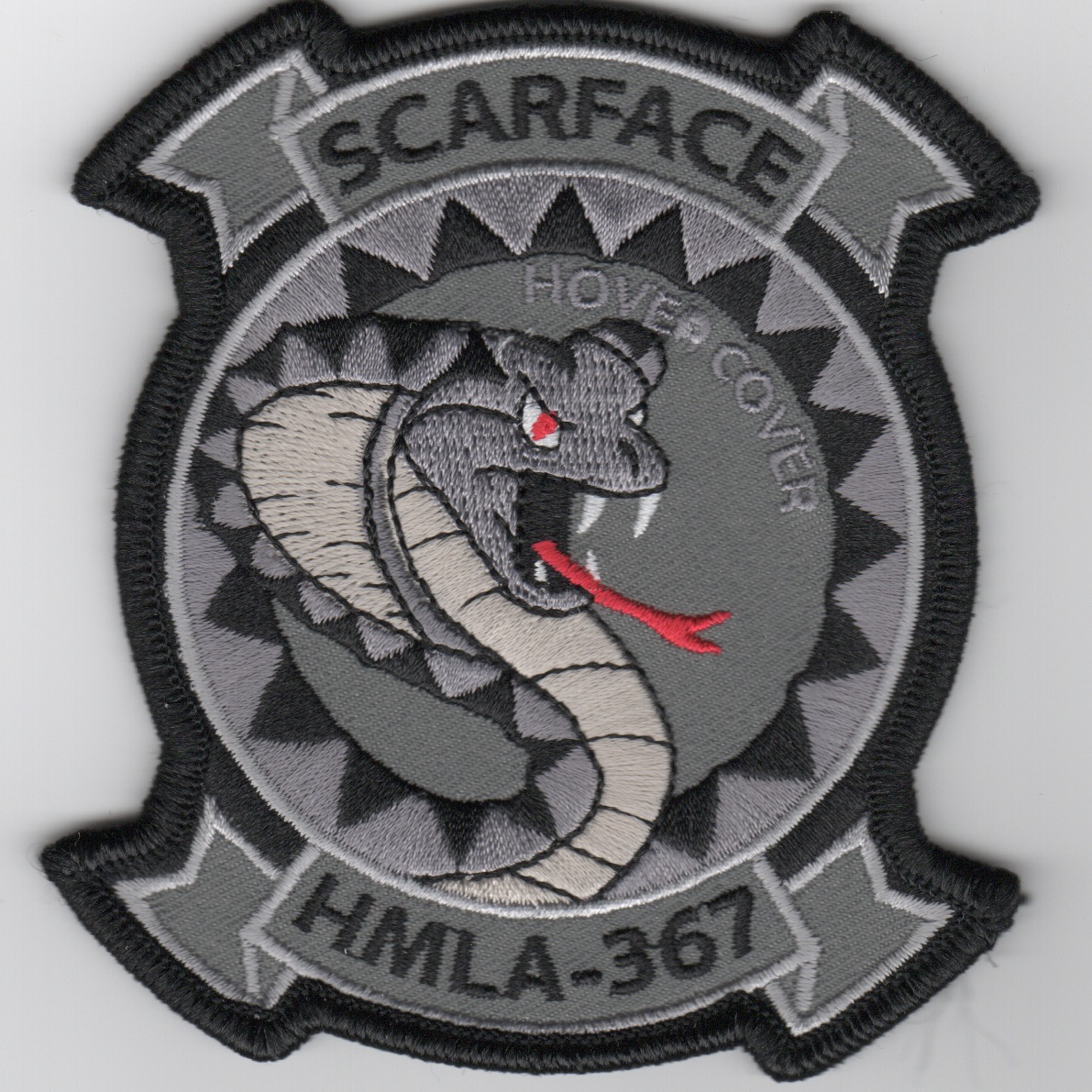 This is the “gray” version of the “Hover Cover” series of patches for HMLA-367. They are attached to MAG-39 located at MCAS Camp Pendleton. Their lineage is from VMO-351 (1943), then redesignated as VMO-3, 15 Jan 1944, then deactivated 20 August 1949. They were reactivated as VMO-3, 1 August 1966 and changed to HML-367, 24 March 1968. They were redesignated HMLA-367, 1 January 1988. This unit is a highly decorated unit from Vietnam to present with involvement from Southeast Asia Evac, April 1975 to the Operation Restore Hope – Somalia.