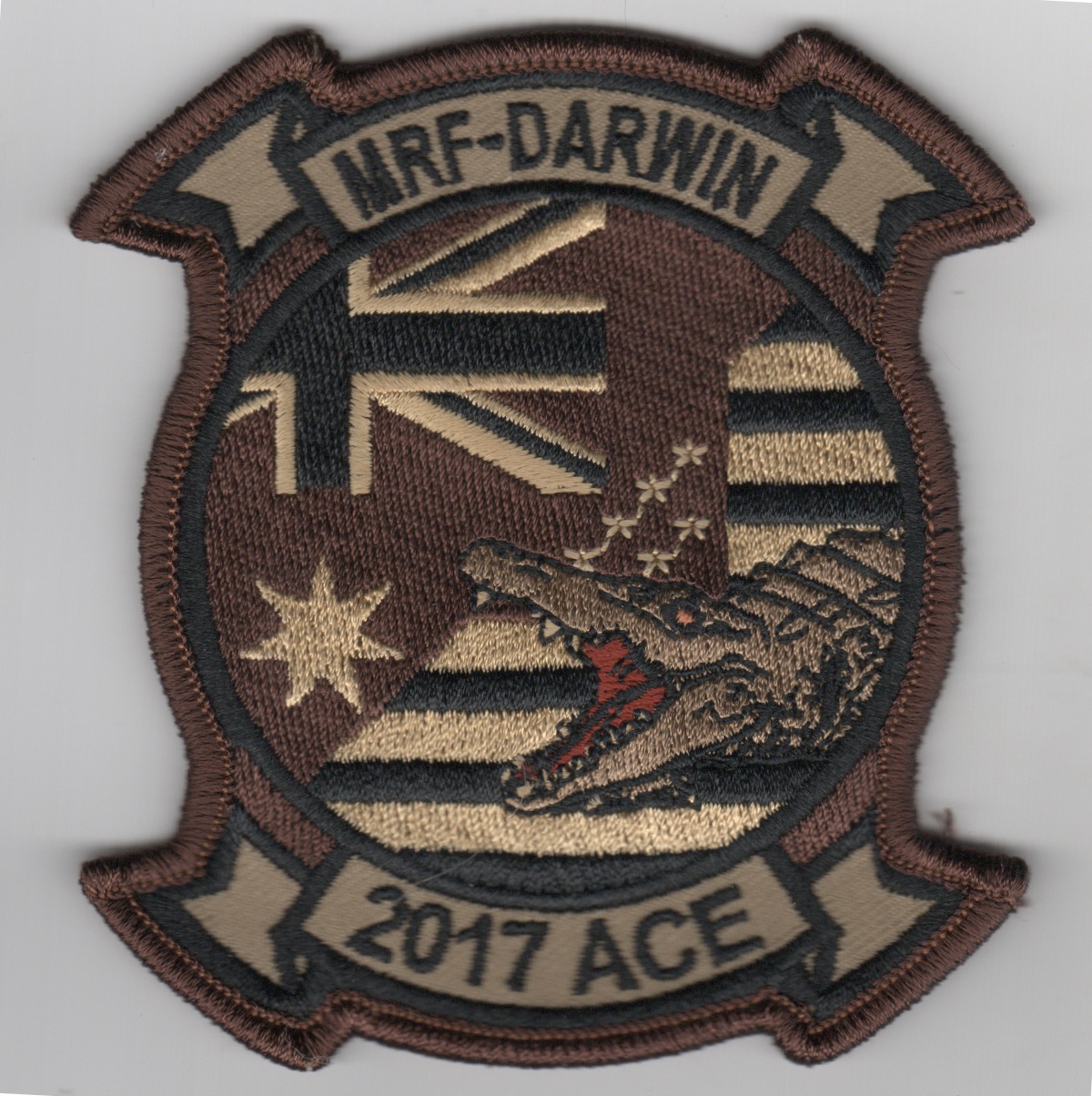 HMLA-367 spends approximately six of each eighteen months split into rotations to Marine Corps Air Station Futenma, Okinawa, Japan as well as attached as Det “A” in Subic Bay, Philippines, and as part of an Aviation Combat Element (ACE) aboard an amphibious assault ship, typically the USS Tarawa (LHA-1) while in rotation with two other squadrons also based at Marine Corps Air Station Camp Pendleton, California. While not on their rotation overseas, HMLA-367 supported major exercises deploying for training frequently to the Marine Corps Air Ground Combat Center Twentynine Palms, California, Marine Corps Air Station Yuma, Arizona, Nellis Air Force Base, Nevada & Naval Air Station Fallon, Nevada. This patch was created for HMLA-367 for one of their deployments/rotations down to Australia and says “MRF-DARWIN”. This version has the desert flag on it and does not come with velcro attached.