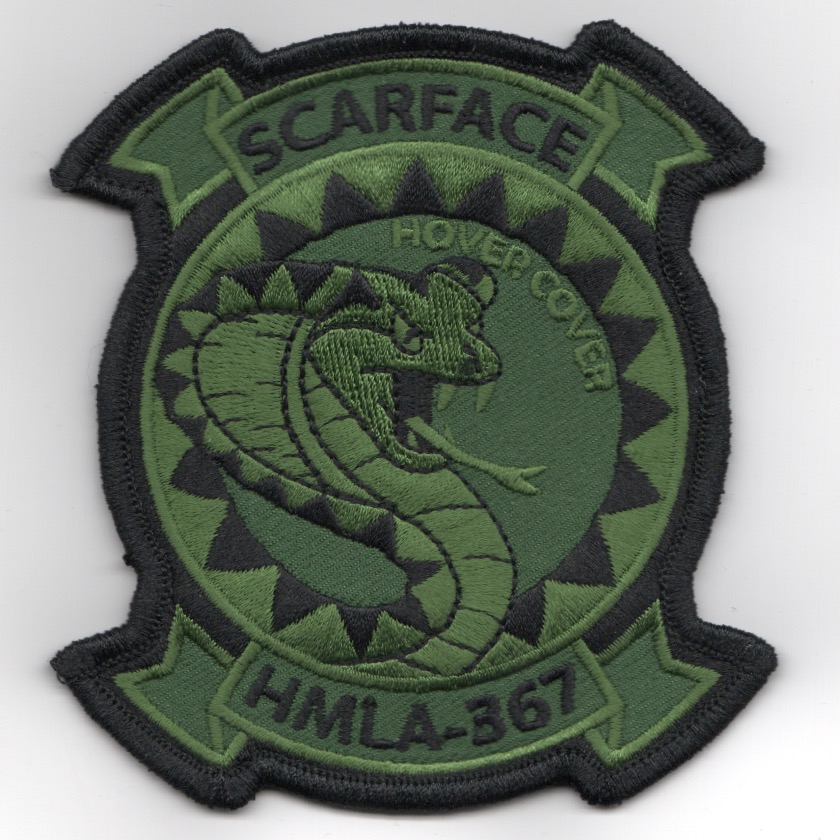 This is the Subdued version with the black border for the squadron patch for HMLA-367. They are attached to MAG-39 located at MCAS Camp Pendleton. Their lineage is from VMO-351 (1943), then redesignated as VMO-3, 15 Jan 1944, then deactivated 20 August 1949. They were reactivated as VMO-3, 1 August 1966 and changed to HML-367, 24 March 1968. They were redesignated HMLA-367, 1 January 1988. This unit is a highly decorated unit from Vietnam to present with involvement from Southeast Asia Evac, April 1975 to the Operation Restore Hope – Somalia. This patch does not have velcro on the back.