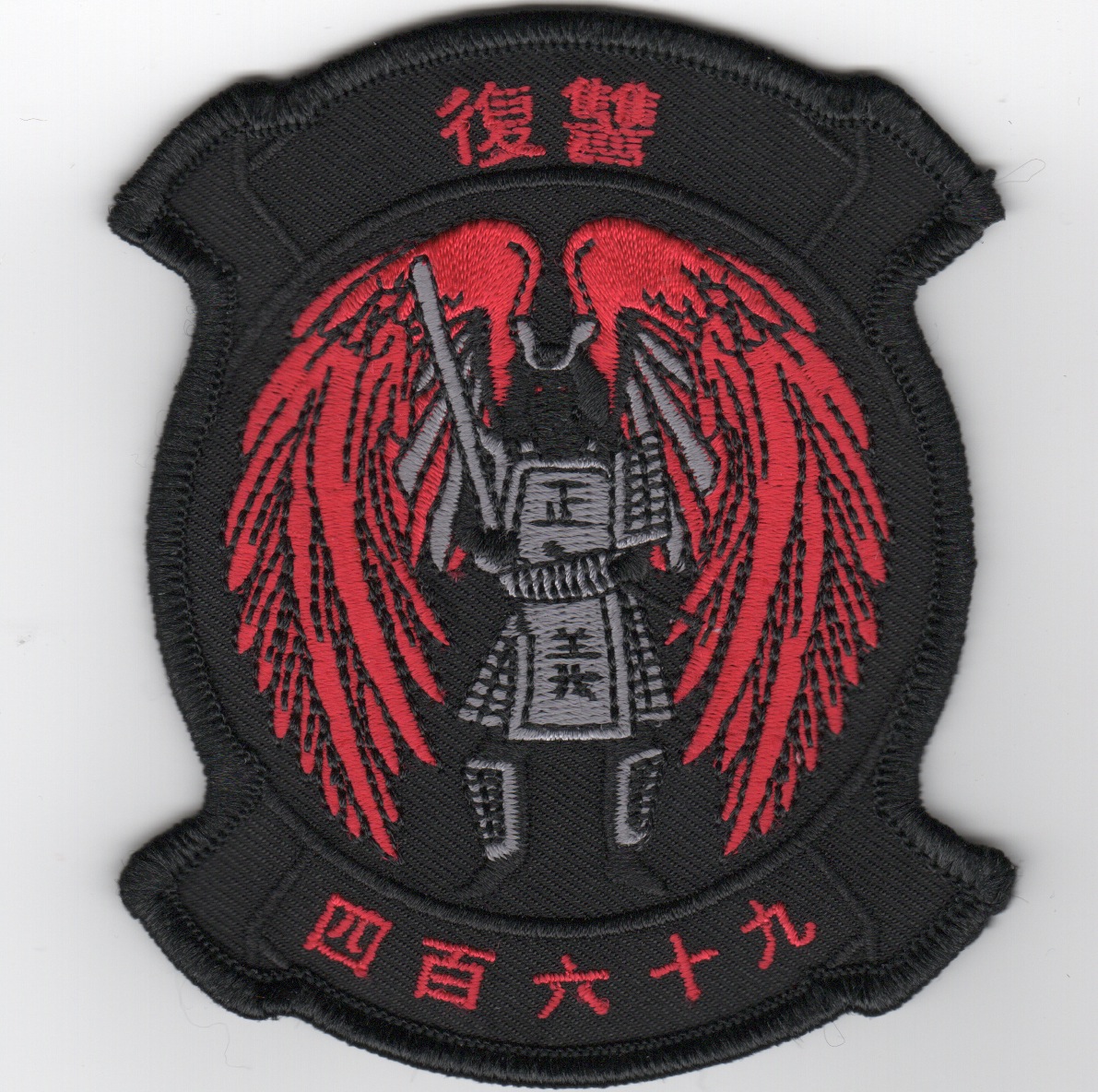 This is the black version of the ‘VENGEANCE’ patch for their Japan Deployment. It shows a Samurai in full regalia with Japanese script.