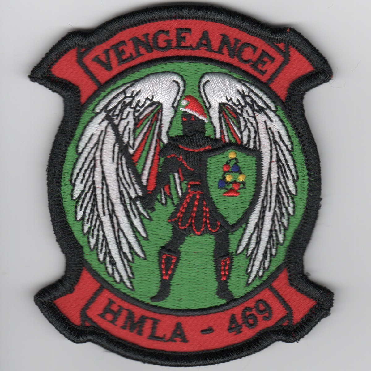 This patch was created by HMLA-469 and says “VENGEANCE” along the top, with a red background and Christmas tree in the middle. This patch doesn’t have velcro attached!!