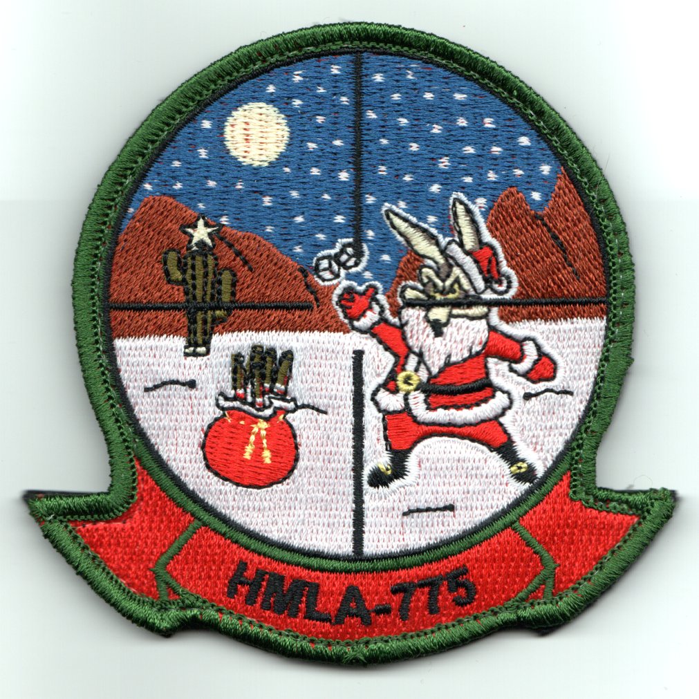Marine Light Attack Helicopter Squadron 775 (HMLA-775) is a reserve United States Marine Corps helicopter squadron consisting of AH-1W SuperCobra attack helicopters and UH-1Y Venom utility helicopters. The squadron was reactivated from cadre status on 1 Oct 2016 and is based at Marine Corps Base Camp Pendleton, California and falls under the command of Marine Aircraft Group 41 (MAG-41) and the 4th Marine Aircraft Wing (4th MAW). The ‘Coyotes’ of HMLA-775 participated in Desert Storm operating out of King Abdul Aziz air base, Saudi Arabia. This patch is the “CHRISTMAS” version of the squadron patch and already has the velcro on the back.