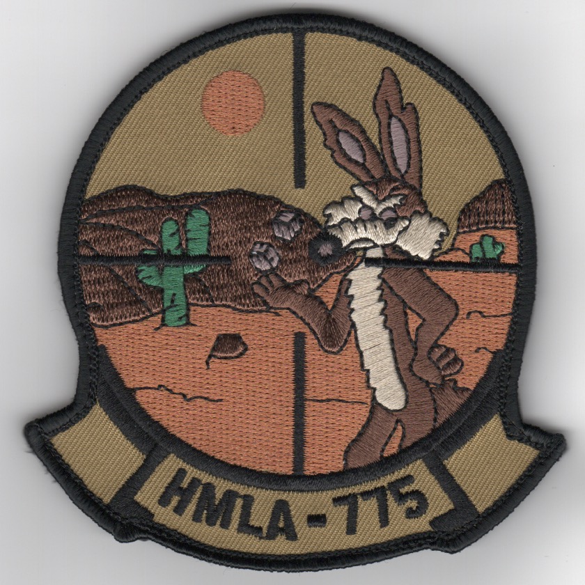 Marine Light Attack Helicopter Squadron 775 (HMLA-775) is a reserve United States Marine Corps helicopter squadron consisting of AH-1W SuperCobra attack helicopters and UH-1Y Venom utility helicopters. The squadron was reactivated from cadre status on 1 Oct 2016 and is based at Marine Corps Base Camp Pendleton, California and falls under the command of Marine Aircraft Group 41 (MAG-41) and the 4th Marine Aircraft Wing (4th MAW). The ‘Coyotes’ of HMLA-775 participated in Desert Storm operating out of King Abdul Aziz air base, Saudi Arabia. This patch is the “DESERT SKY” version of the squadron patch and already has the velcro on the back.