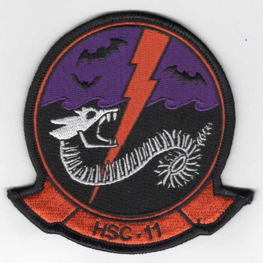 Helicopter Sea Combat Squadron 11 (HSC-11), also known as the Dragon Slayers, is a US Navy helicopter squadron based at Naval Air Station Norfolk as part of Carrier Air Wing 1 operating MH-60S helicopters deployed aboard aircraft carriers. The squadron was established on 27 June 1957 at Naval Air Station Quonset Point as Helicopter Anti-Submarine Squadron 11 (HS-11) with Sikorsky HSS-1 Seabat helicopters. In 2016, HS-11 transitioned to MH-60S and re-designated as HSC-11. This is the ‘HALLOWEEN’ version of their squadron patch, shows a “skeletal” Dragon, and does not come with velcro already attached.