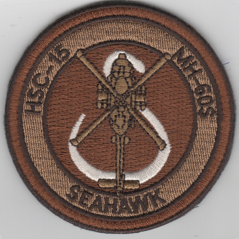 On arriving back to homeport San Diego, HS-15 began transitioning to the new MH-60S helicopter, and the squadron was officially redesignated as HSC-15 on 15 November 2012.Ê During their tenure, the Red Lions have proven their valor over the past few years, executing their primary mission in an operational environment, but were decommissioned in early 2017. In order to help the squadron during this period, we offered and purchased ALL their remaining items in order to alleviate the stress of getting rid of everything at the end, and this desert version of their helo “bullet” patch was in the stash of items we purchased…….and this patch has velcro on the back of it. Only a few of these, so get them while they last!