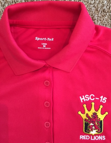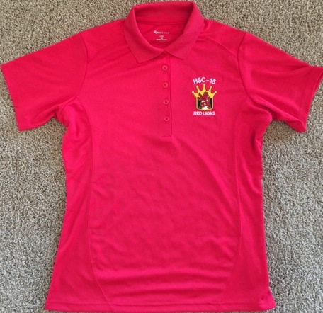 This is the WOMEN’s red version of the Polo shirt from HSC-15. They have decommissioned and sizes are listed above. Please email me before ordering to ensure we have your size 5, as these will probably move quickly. Will try to keep the quantities updated, but it’s always safe to drop me a line or give me a call……the squadron logo of this shirt is shown below.