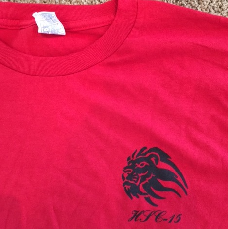 This is the red T-shirt from HSC-15. They have decommissioned and sizes are listed above. Please email me before ordering to ensure we have your size 5, as these will probably move quickly. Will try to keep the quantities updated, but it’s always safe to drop me a line or give me a call……the front of this shirt is shown below.