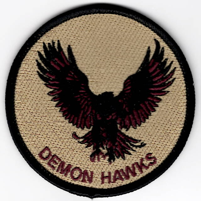 (Another AV8RSTUFF Creation): Located at NAS Norfolk, VA, the “Fleet Angels” operate the Sikorsky MH-60S Knighthawk helicoper. As a Fleet Replacement Squadron (FRS), HSC-2 trains pilots and aircrewmen to employ the MH-60S worldwide in a variety of missions, including fleet logistics support, search and rescue, medical evacuation, special warfare support, anti-surface warfare and humanitarian assistance/disaster relief. When part of the unit deploys, they are called a “DETACHMENT”, so these patches were created for “DET-II”. This is the “DEMON HAWKS” bullet patch that shows the “DEATH HAWK” coming in for the kill. This patch does not come with velcro attached.