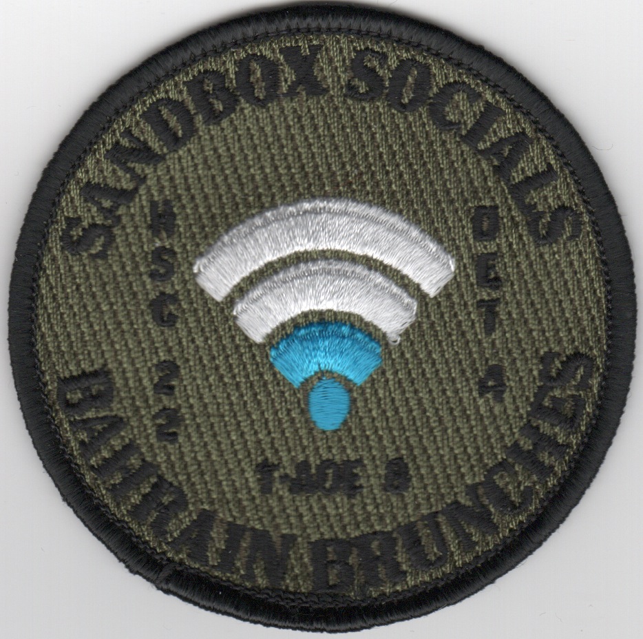 This is the subdued version of the HSC-22 DET-4 patch that says “”””SANDBOX SOCIALS”””” across the top and “”””BAHRAIN BRUNCHES”””” along the bottom. This patch does not come with velcro.