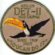 This is the desert “”””TOUCAN”””” version of the Det-2 patch from the HSC-26 guys that states “”””EURO TRIP ’05″””” while aboard the USS SAIPAN.