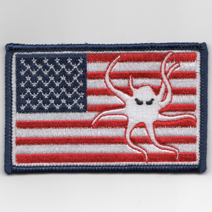 Helicopter Combat Support Squadron (HC) 8 was redesignated, in early 2005, Helicopter Sea Combat Squadron (HSC) 28 as part of a merger of the HC and helicopter anti-submarine (HS) communities. The change came as a result of the introduction of the MH-60S Knighthawk, replacing the CH-46D Sea Knight, UH-3H Sea King and the SH-60F Seahawk, and the future introduction of the MH-60R Seahawk, which is replacing the SH-60B Seahawk. This patch is the R/W/B version of the American Flag that also has their mascot logo (Octopus) on the right and DOES come with velcro attached.