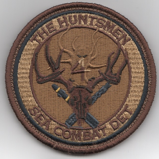 Another AV8RSTUFF creation for the HSC-28/Det-4 ‘HUNTSMAN’ patch depicting a “MALE” deer. Behind the antlers, you can barely detect the “octopus” (their logo) and the patch says “SEA COMBAT DET” along the bottom. This is the desert version of their “HUNTSMEN” patch does come with velcro attached.