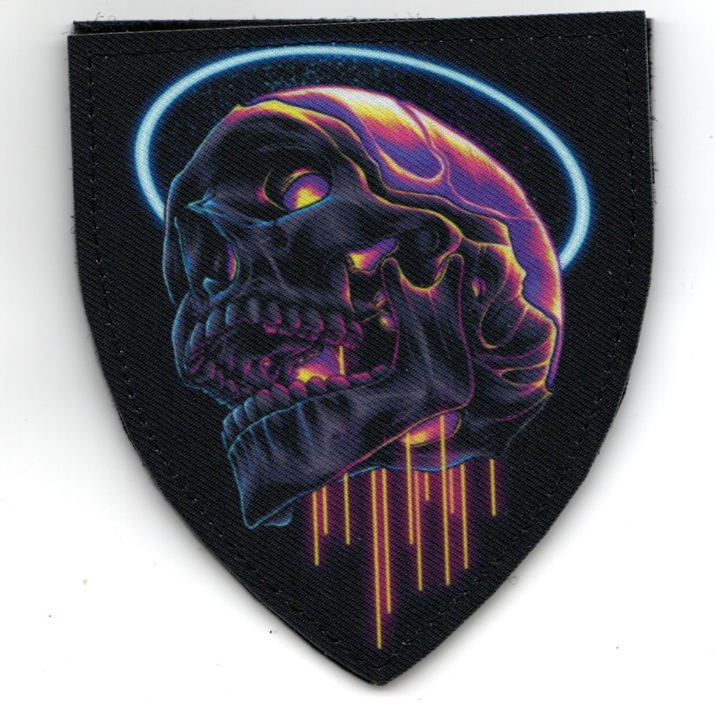 (Another AV8RSTUFF Creation): Helicopter Combat Support Squadron (HC) 8 was redesignated, in early 2005, Helicopter Sea Combat Squadron (HSC) 28 as part of a merger of the HC and helicopter anti-submarine (HS) communities. The change came as a result of the introduction of the MH-60S Knighthawk, replacing the CH-46D Sea Knight, UH-3H Sea King and the SH-60F Seahawk, and the future introduction of the MH-60R Seahawk, which is replacing the SH-60B Seahawk. This is the sublimated version of the (purple) “SKULL” patch that shows a HALO above the skull, purple/yellow sublimation, and does come with velcro attached.