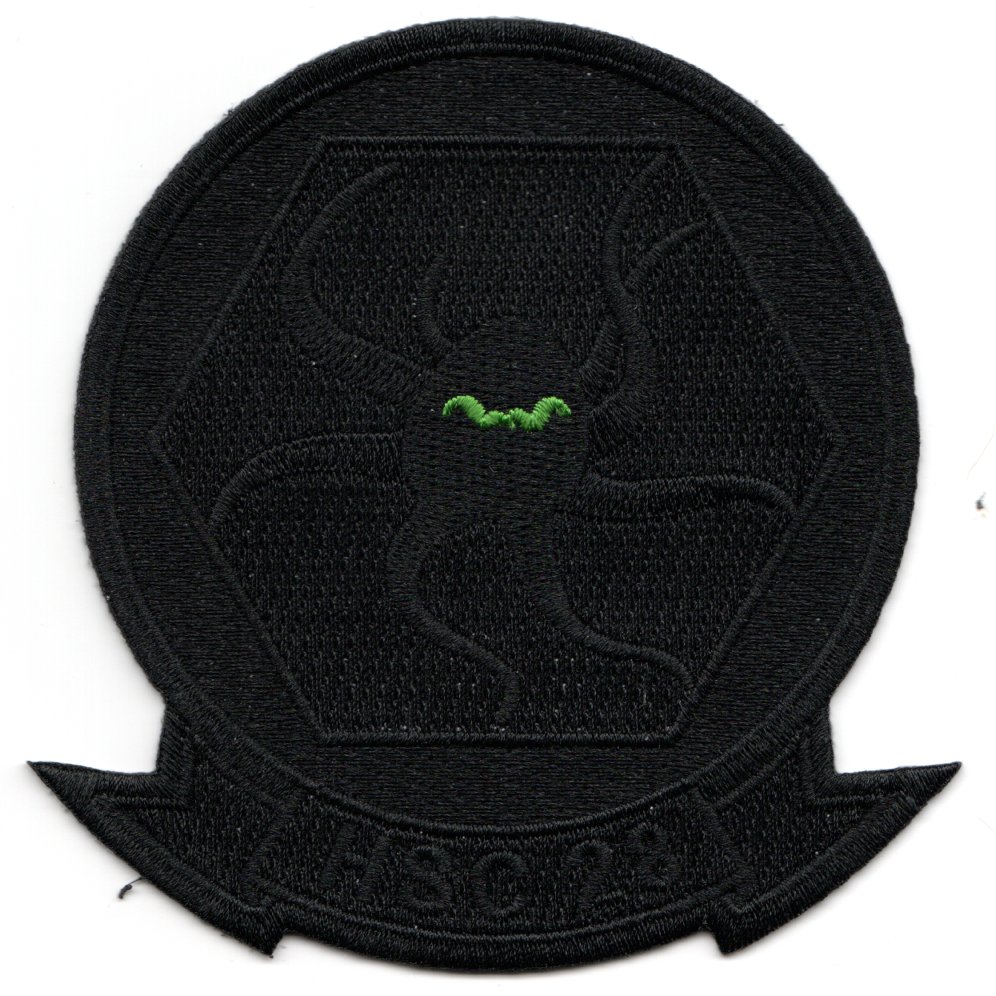 This is the regular-sized, black-with-GREEN-EYES version of the squadron patch for HSC-28, created after a LOT of NIGHT flying/operations on Night Vision Goggles (NVGs). Helicopter Combat Support Squadron (HC) 8 was redesignated, in early 2005 asÊHelicopter Sea Combat Squadron 28 (HSC-28ÊThe ÒDragon Whales!Ó)Êas part of a merger of the HC and helicopter anti-submarine (HS) communities. The change came as a result of the introduction of the MH-60S ÒKnighthawkÓ, replacing the CH-46D ÒSea KnightÓ, UH-3H Sea King and the SH-60F Seahawk, and the future introduction of the MH-60R Seahawk, which is replacing the SH-60B Seahawk. TheÊDragon WhalesÊof HC-8ÊflewÊtheÊCH-46ÒSea KnightÓÊand performed search and rescue and vertical replenishment in support of the Atlantic Fleet. HC-8 also operated the Atlantic Fleet Helicopter Operations School (HELIOPS) providing Landing Signalman Enlisted (LSE), Helicopter Instrument Ground School (HIGS), Helicopter Control Officer (HCO), and night vision goggles training. ÊHSC-28 now flies solely the MH-60S ÒKnighthawkÓÊto perform Search and Rescue (SAR) and vertical replenishment (VERTREP) as well as, with the implementation of the armed helo upgrade, the ability to support Special Operation Forces (SOF), Anti-Surface Warfare (ASUW), and Personnel Recovery (PR) mission areasÊin support of the Atlantic Fleet.