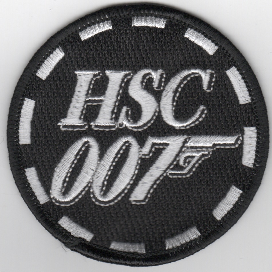 This is one of the patches created by HSC-7 that says “007”. HSC-7 Helicopter Sea Combat Squadron Seven, also known as the “Dusty Dogs”, is a United States Navy helicopter squadron located at Naval Station Norfolk, VA. The Dusty Dogs are (CAO Feb 2016) attached to Carrier Air Wing Three and deploy aboard the aircraft carrier USSÊDwight D. Eisenhower.