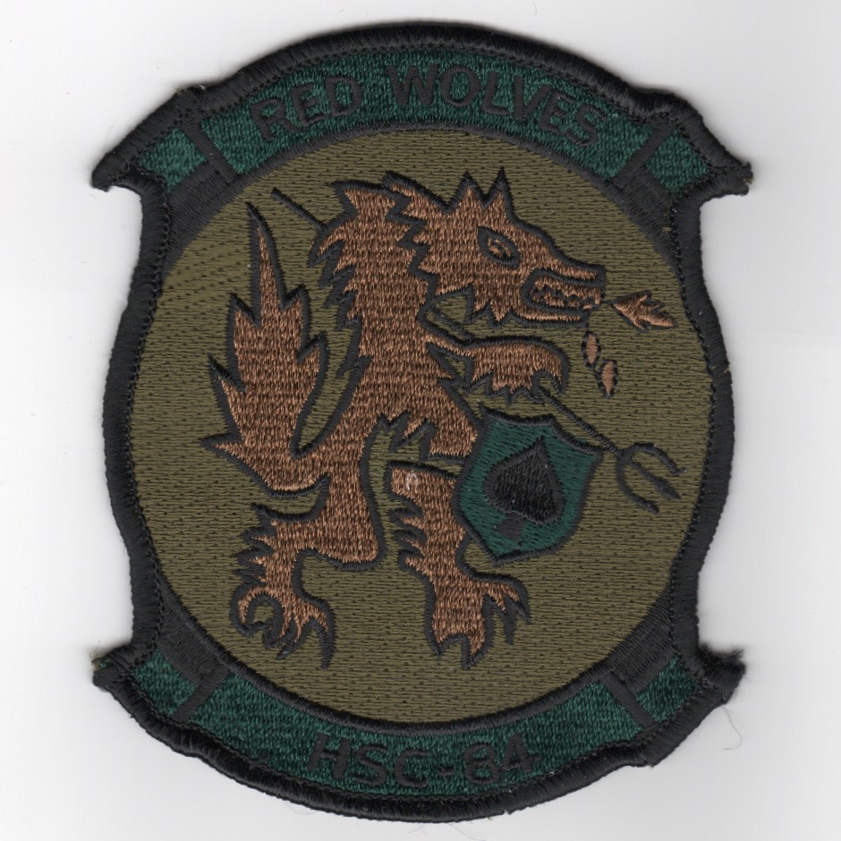 This is the subdued version of the squadron patch for Helicopter Sea Combat Squadron 84 (HSC-84) “Red Wolves” which is a helicopter squadron of the United States Navy Reserve. Along with the “Firehawks” of HSC-85, the ÒRed WolvesÓ are one of only two squadrons in the U.S. Navy dedicated to supporting Navy SEAL and SWCC Teams, and Combat Search & Rescue. They currently operate eight HH-60H Rescue Hawks organized into four independent, two aircraft detachments that can deploy anywhere in the world within 72 hours of notice. No velcro attached.