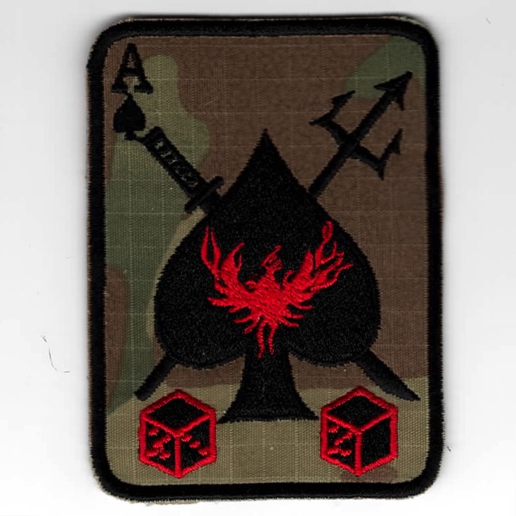 (From the Squadron supplier): Helicopter Sea Combat Squadron 85 (HSC-85) Firehawks is a US Navy Reserve helicopter squadron based at NAS North Island, San Diego, CA. HSC-85 currently flies the HH-60H Seahawk. This squadron is one of only two Navy helicopter squadrons dedicated to Special Operations support as a primary role. This is the OCP version (with the Black Ace) of their DET-A patch and does not have velcro attached.