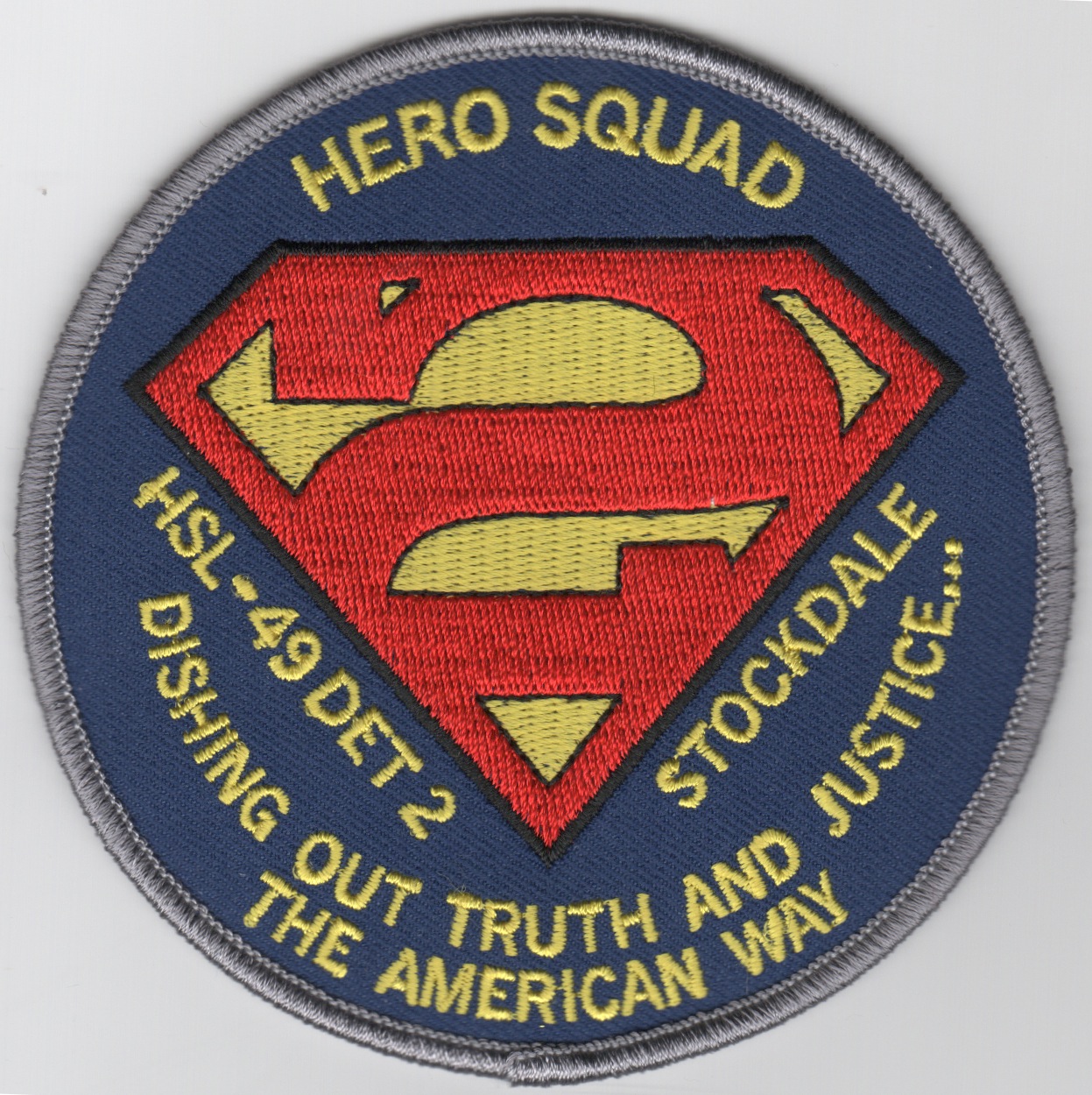 Helicopter Anti-Submarine Squadron Light FOUR NINE (HSL-49), was a United States Navy Maritime Strike helicopter squadron based in San Diego, California. The Scorpions of HSL-49 were an operational fleet squadron based at NAS North Island. The squadron provides combat-ready pilots, aircrewmen, technicians, and aircraft to Pacific Fleet warships. The squadron operated the MH-60R Seahawk helicopter. This is one of their Detachment patches for Det-2. It says “HERO SQUAD” at the top w/Superman’s Crest (backwards) in the middle. This patch does not come with velcro attached.