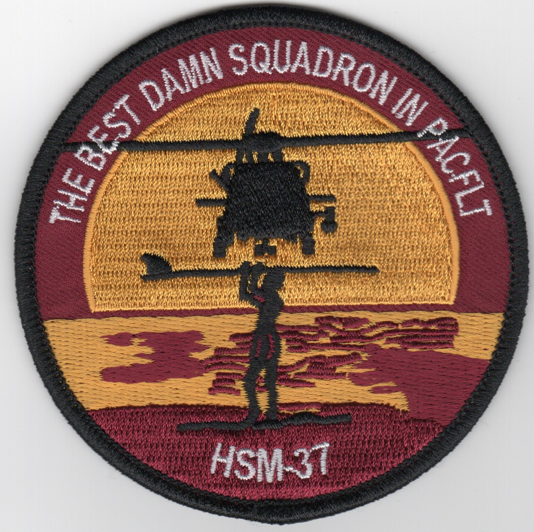 HSL-37 was established on 3 July, 1975 aboard Naval Air Station, Barbers Point, Hawaii, as the third operational Light Airborne Multi-Purpose System (LAMPS) squadron in the Pacific Fleet. On 6 February 1992, HSL-37 became the first and only US Navy helicopter squadron to transition from the SH-2F “Seasprite” LAMPS MK I to the SH-60B “Seahawk” LAMPS MK III. HSL-37 operated as a composite LAMPS MK I/MK III squadron until 1 October 1993, at which time it completed the transition to the SH-60B. The mission of the “EASYRIDERS” is to provide highly trained, combat-ready LAMPS detachments to the ships of the Pacific Fleet Surface Force. This patch was created to let everyone know who “The Best Damn Squadron in PACFLT” is (note the surfboard pointing to the right). This patch does not come with velcro.