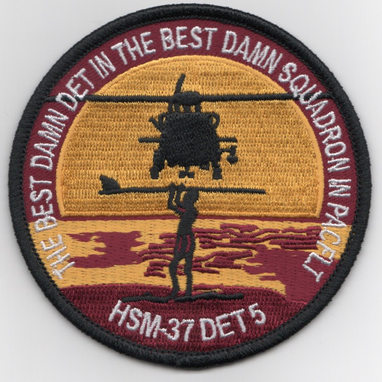HSL-37 was established on 3 July, 1975 aboard Naval Air Station, Barbers Point, Hawaii, as the third operational Light Airborne Multi-Purpose System (LAMPS) squadron in the Pacific Fleet. On 6 February 1992, HSL-37 became the first and only US Navy helicopter squadron to transition from the SH-2F “Seasprite” LAMPS MK I to the SH-60B “Seahawk” LAMPS MK III. HSL-37 operated as a composite LAMPS MK I/MK III squadron until 1 October 1993, at which time it completed the transition to the SH-60B. The mission of the “EASYRIDERS” is to provide highly trained, combat-ready LAMPS detachments to the ships of the Pacific Fleet Surface Force. This patch was created to let everyone know who “The Best DAMN DET in the best DAMN SQUADROn in PACFLT” is (note the surfboard pointing to the right). This patch does not come with velcro.