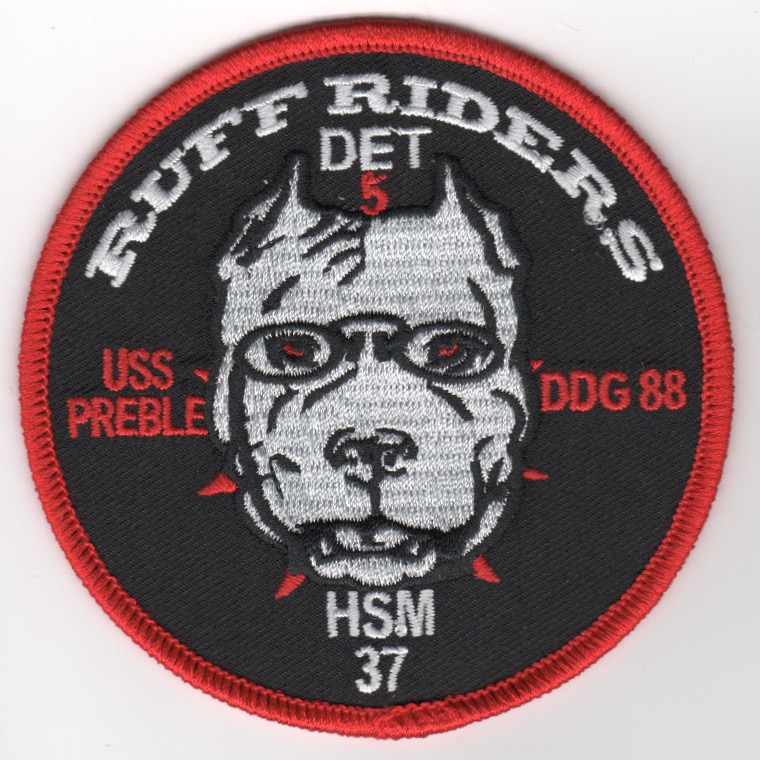 This is the Red/Black version of the deployment patch for the HSM-37/Det-5 “”””RUFF RIDERS”””” onboard the USS PREBLE (DDG-88). Their history is detailed above and online. This patch does not have velcro already attached.