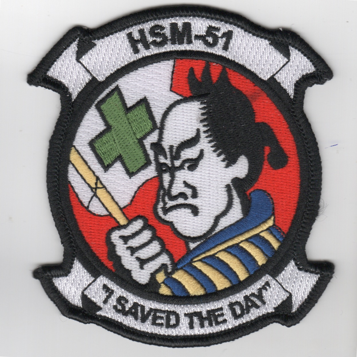This is the squadron version of the patch for the HSM-51 “Warlords” that says “I SAVED THE DAY” across the bottom and shows the Samurai holding a White Flag with a green cross. I don’t have the “story” behind this patch yet, but if anyone knows, please advise. I purchased a collection from Australia and there were a few of these in there…..ONLY a few. This patch does not have velcro. Get it while they last!