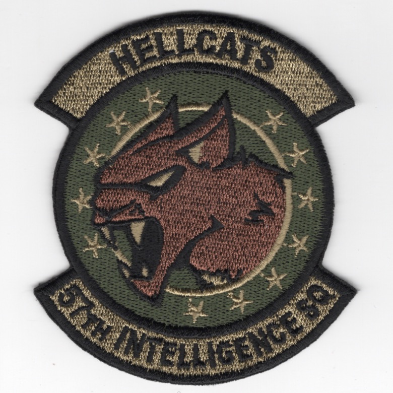 The 57th Intelligence Squadron (IS), based at Joint Base San Antonio-Lackland, TX produces intelligence mission data for joint and allied partners to ensure spectrum warfare dominance. It operates under the 363d Intelligence, Surveillance, and Reconnaissance (ISR) Wing, providing critical targeting and analytical support for global operations. This is the OCP version of their squadron patch with the SPICE BROWN *HELLCAT* Mascot in the center and does not come with velcro attached.