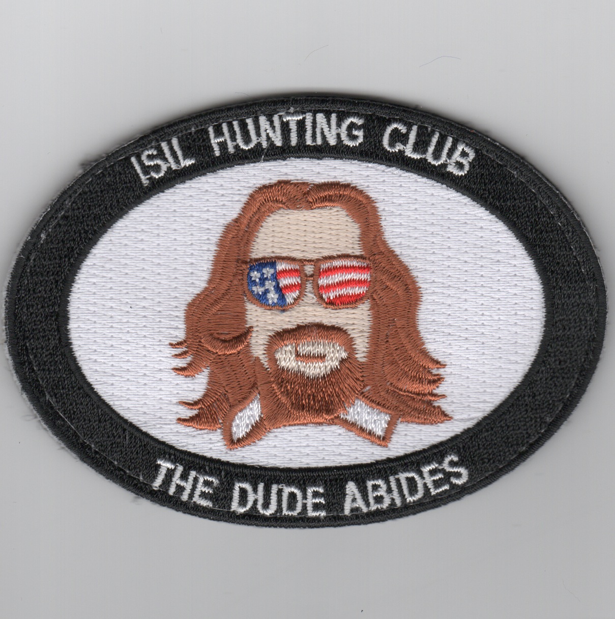 This is the “”””ISIL HUNTING CLUB”””” patch depicting “”””The Dude”””” on it and says “”””The Dude Abides””””. This patch DOES come with velcro.