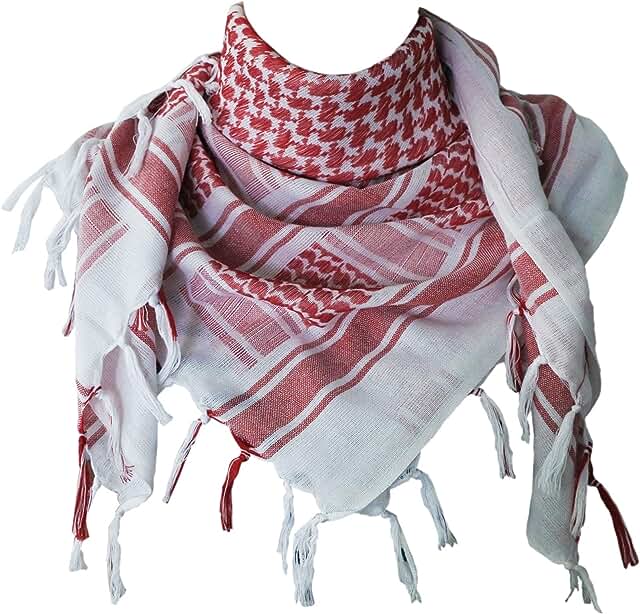 Traditionally crafted from cotton, these were first donned by the nomadic Bedouin tribes as a protection against the desert sun and sand of the harsh climate in the Middle Eastern countries. The keffiyeh’s usefulness in the desert landscape played a key role in its widespread popularity across diverse cultures in the region. These are also worn/carried by our “Special OPS” members, as well as “combat theater flyers” in case they needed to blend in with the local community. This is the red-white version of the KEFFIYAH…..