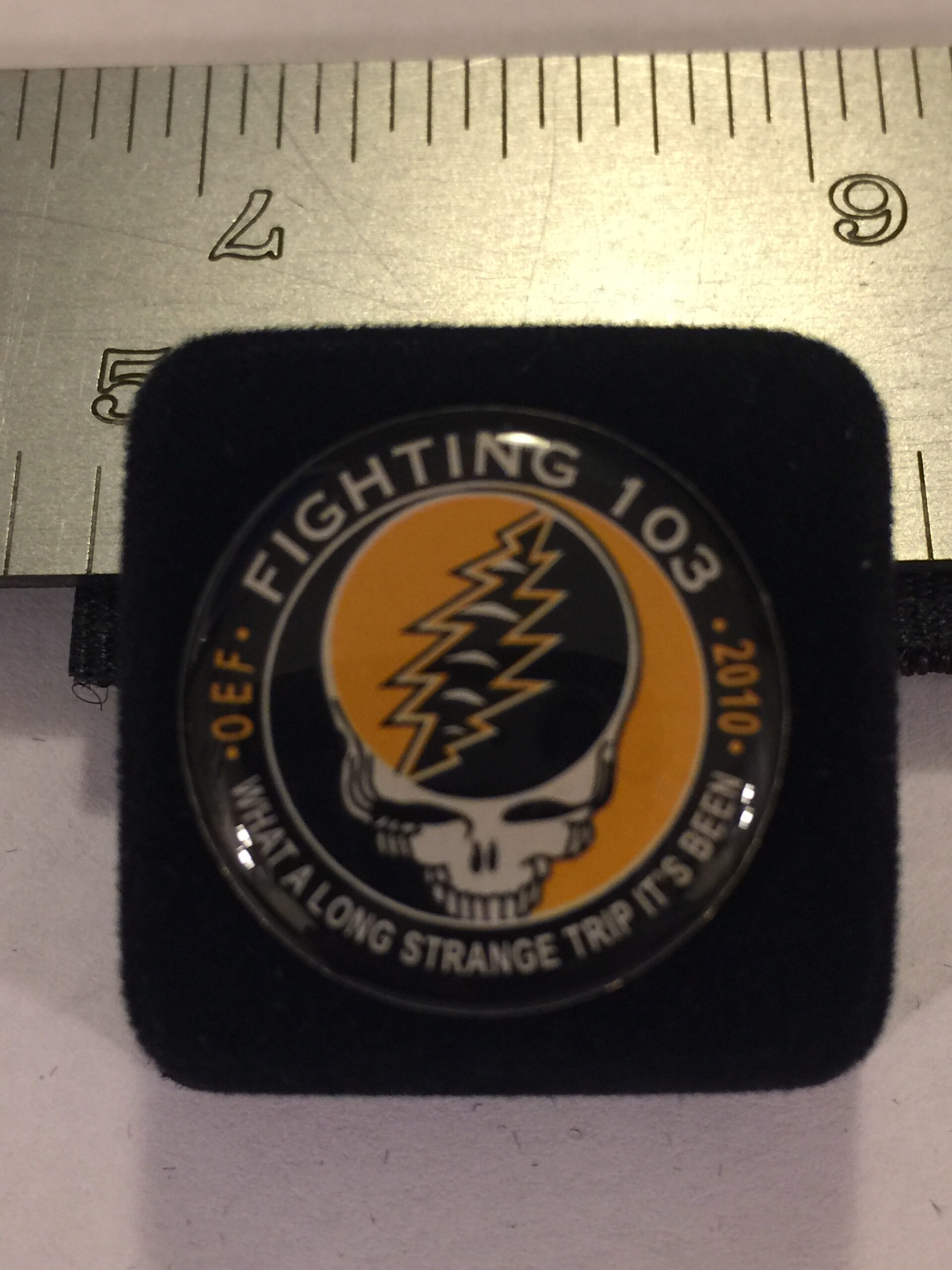 This is the Lapel Pin for the VF-103 Jolly Rogers in the shape of the “Grateful Dead” logo. Only have a few (7 initially), so they will probably go fast.