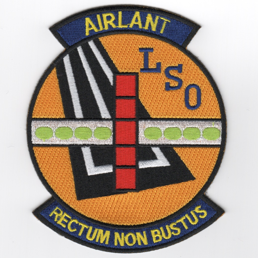 This is the new version of the LSO patch worn only by Atlantic Fleet (AirLant) LSO’s. The blue shield is still in use and is the most popular and wide-spread patch worn by ALL the LSO’s, but this one was created for AIRLANT and says “RECTUM NON BUSTUS” along the bottom. This patch does not have velcro attached.
