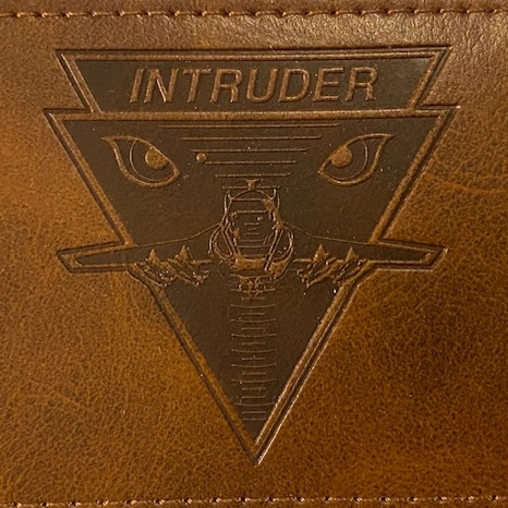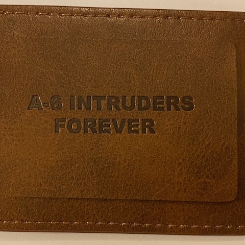 This is a LEATHER luggage tag that has the A-6 INTRUDER emblem on one side with room for your personal information on the other side that says A-6 INTRUDERS FOREVER. Pretty cool item.