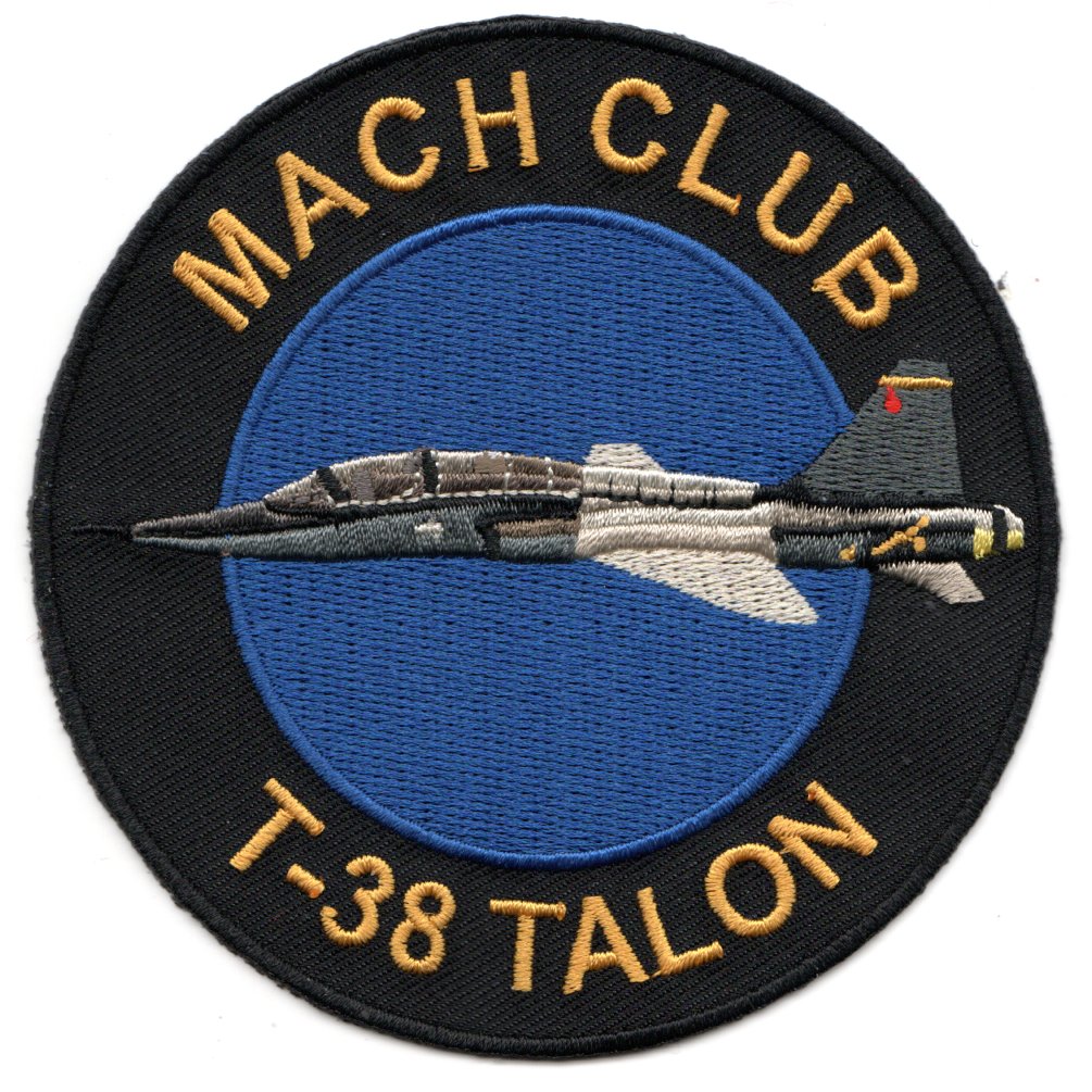 (Another AV8RSTUFF Creation): This is the “”””MACH CLUB”””” patch created for those aviators who went “”””above the number”””” in the T-38 ‘TALON’. This patch shows the “”””generic”””” T-38 without any “”””TAIL CODE”””” on it and does not come with velcro attached.
