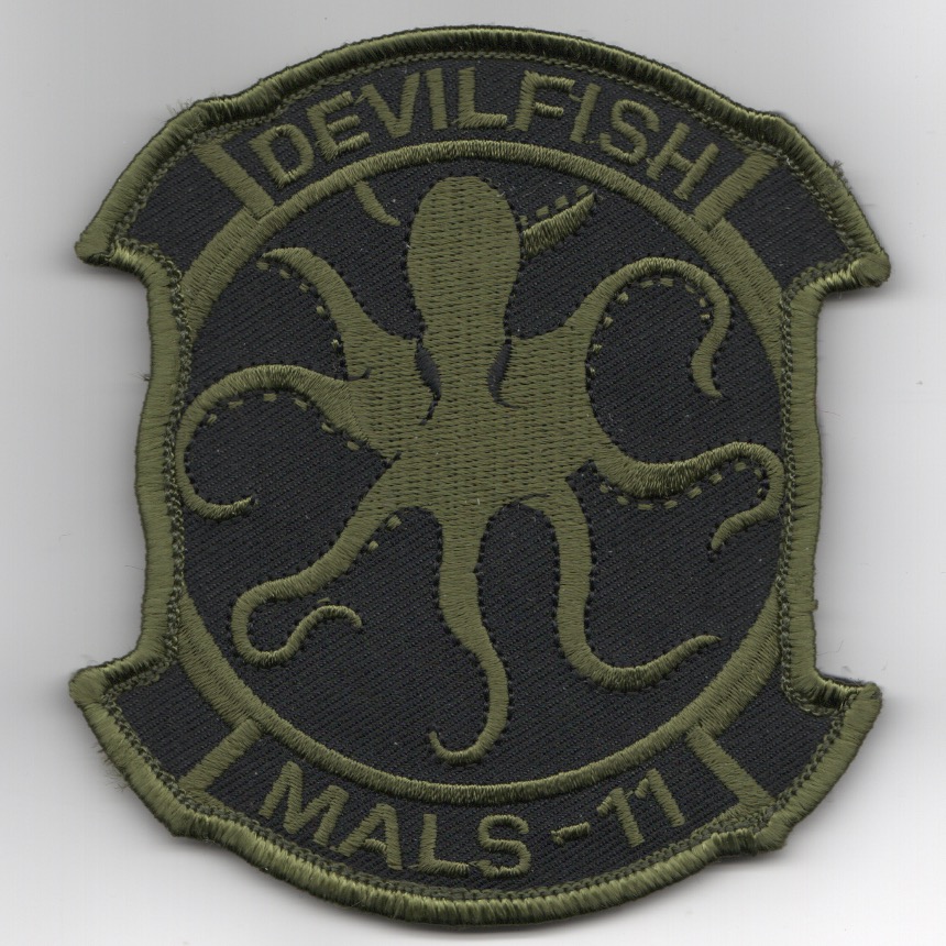 This is the subdued version of the squadron patch for MALS-11 ‘Devilfish’. Marine Aviation Logistics Squadron 11 (MALS-11) is an aviation logistics support unit of the United States Marine Corps, part of Marine Aircraft Group 11 (MAG-11), currently based at Marine Corps Air Station Miramar and also part of the 3rd Marine Aircraft Wing. This patch comes with velcro already on the back.