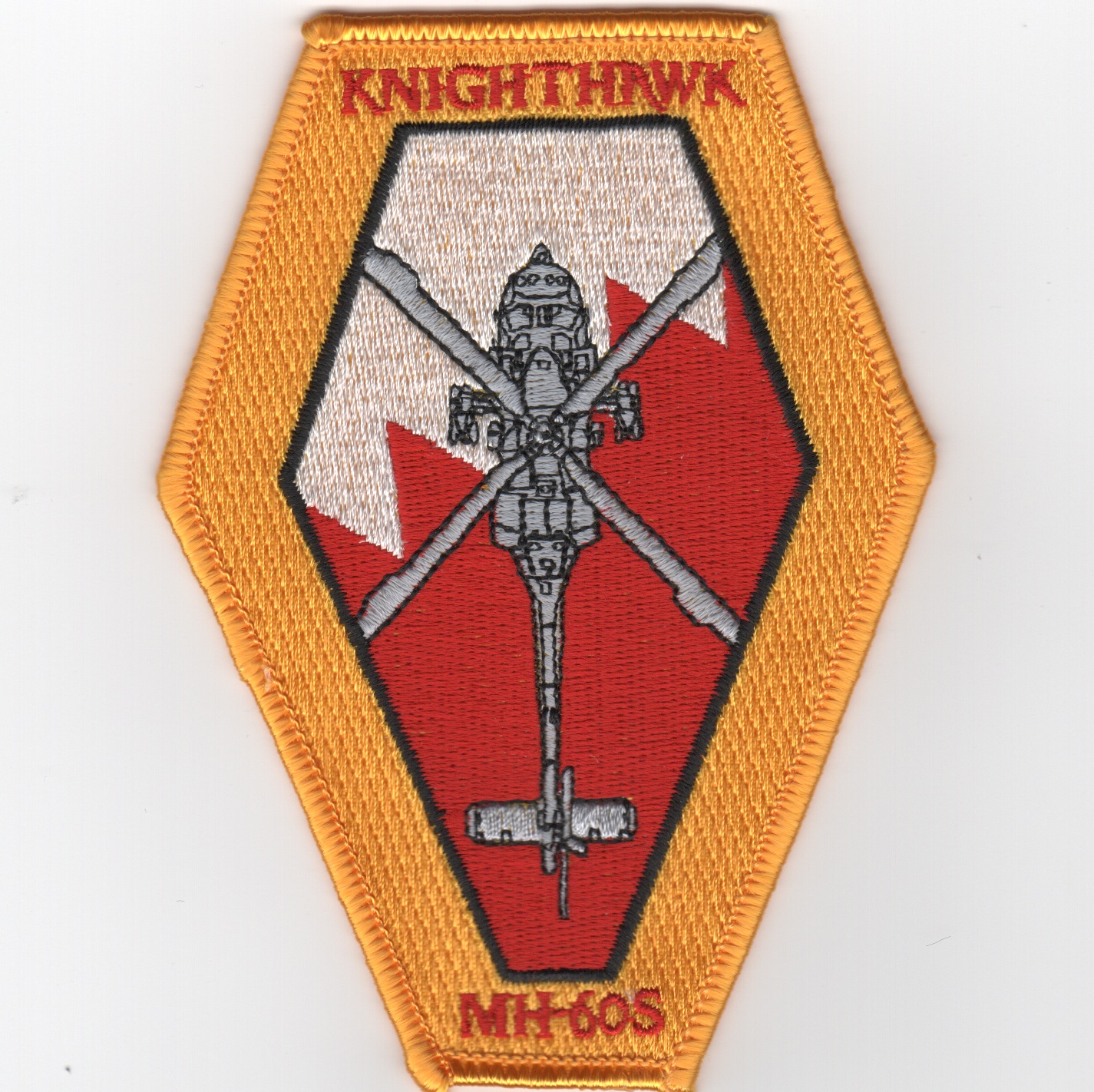 (Another AV8RSTUFF Creation): This is the “”””coffin”””” patch (that’s due to the shape) for the MH-60s ‘Knighthawks’. It says “”””MH-60S”””” at the bottom and does not come with velcro attached.